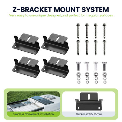 Установка проста с фиксированными опциями монтажа, включенными в комплект.Эти монтажные решения предназначены для надежного прикрепления солнечной панели к крыше вашего RV или любой другой подходящей поверхности, обеспечивая оптимальное воздействие солнца и максимальное поглощение энергии.предотвращение повреждения солнечной панели, вызванного движением или вибрациейЭта особенность особенно полезна тем, кто часто ездит по дороге и хочет прочную, долговечную солнечную систему, которая сможет выдержать трудности путешествия.